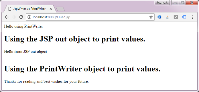Displaying value in a double: <% out.println(d); %> >% out.println("<br/>"); %>